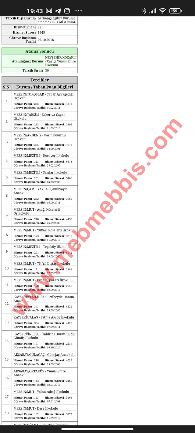 <b> 2024 İl Dışı Tayin Okul Öncesi Minimum Taban Puanları</b>